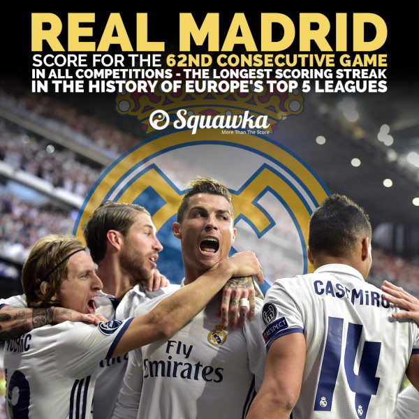 تمكن ناتشو رودريغيز من إفتتاح باب التسجيل في مواجهة فريقه ريال مدريد أمام إشبيلية، وبهذا يحقق النادي "الملكي" رقما جديد في سجله، حيث أنه تمكن من التسجيل للمباراة 62 على التوالي في جميع المسابقات، وهي أطول سلسلة في الدوريات الأوروبية الخمس الكبرى.