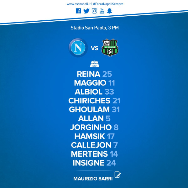 تشكيلة نابولي الرسمية في مواجهة ساسولو