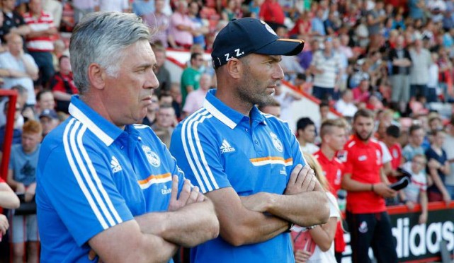 انشيلوتي وزيدان يستعرضون مهاراتهم اثناء تدريبات ريال مدريد